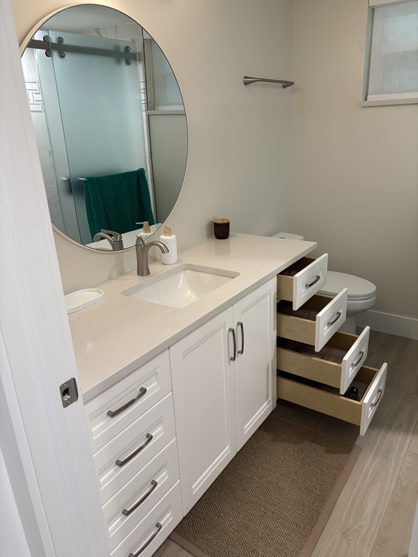 Request InformationModern Bathroom Vanity with Bottom Drawer and Shelf over Toilet