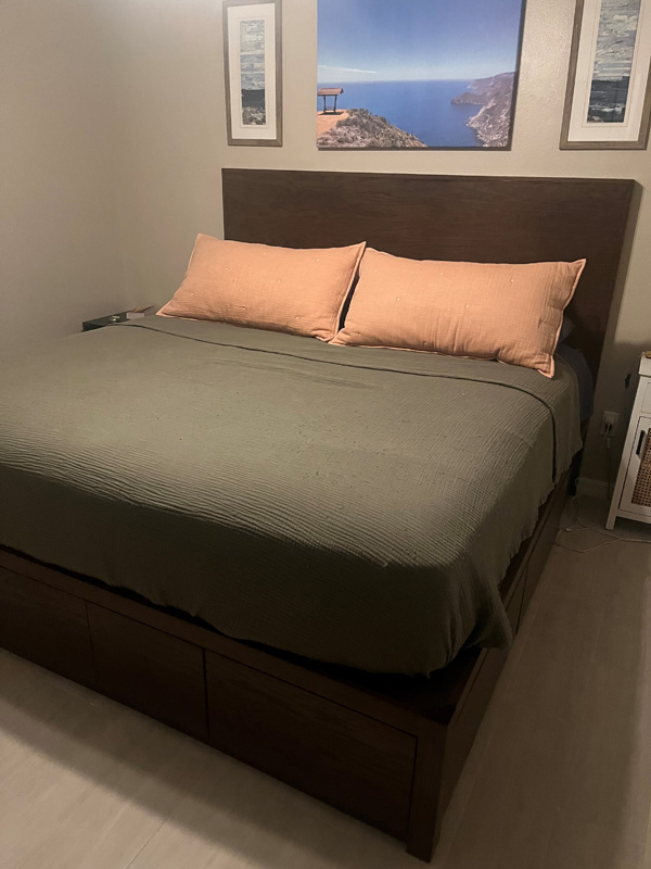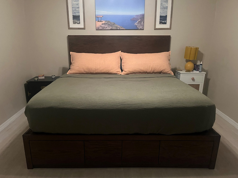 Request InformationCustom 15"h Bed Pedestal with 2 Flat Drawers Faces, 4" Frame & Decking - 42" x 84" x 12”-15"h