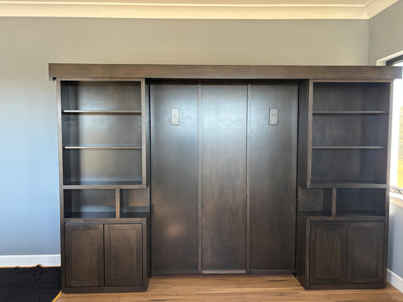 Shaker Queen Sliding Library Wall Bed Group – 136”w x 92”h x 28”d; Sliding Railing adds 2" to top, sides